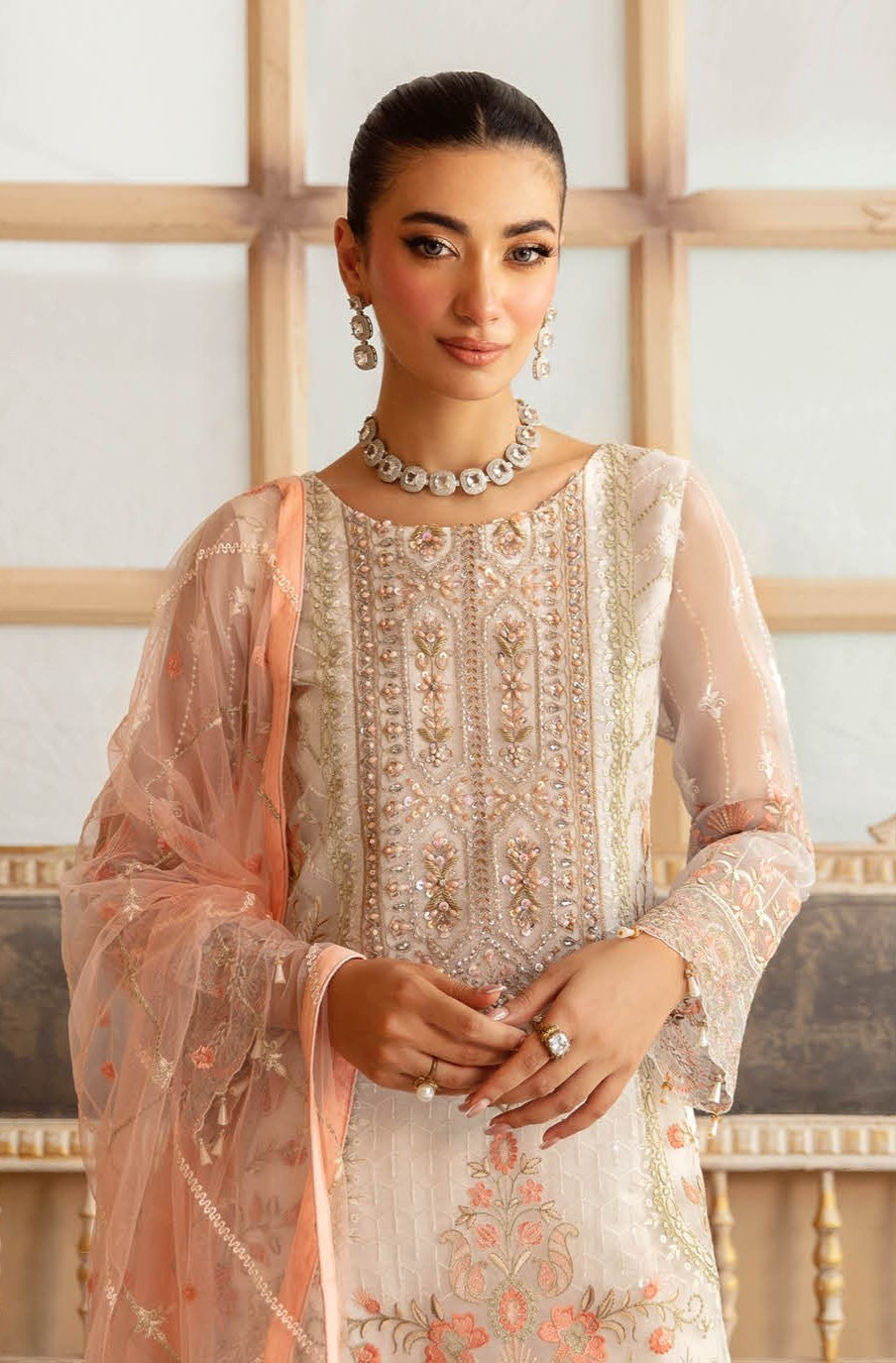 Embroidered Organza front with sequence