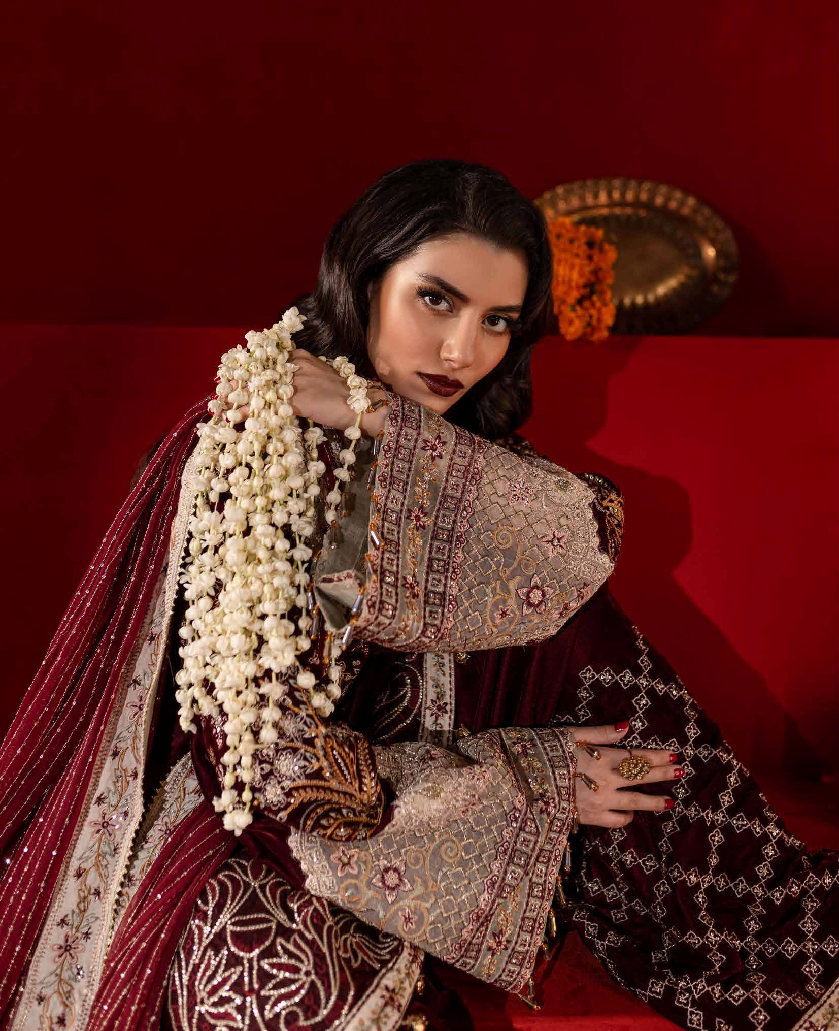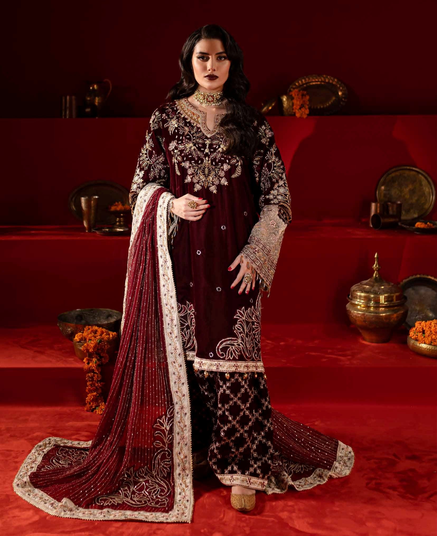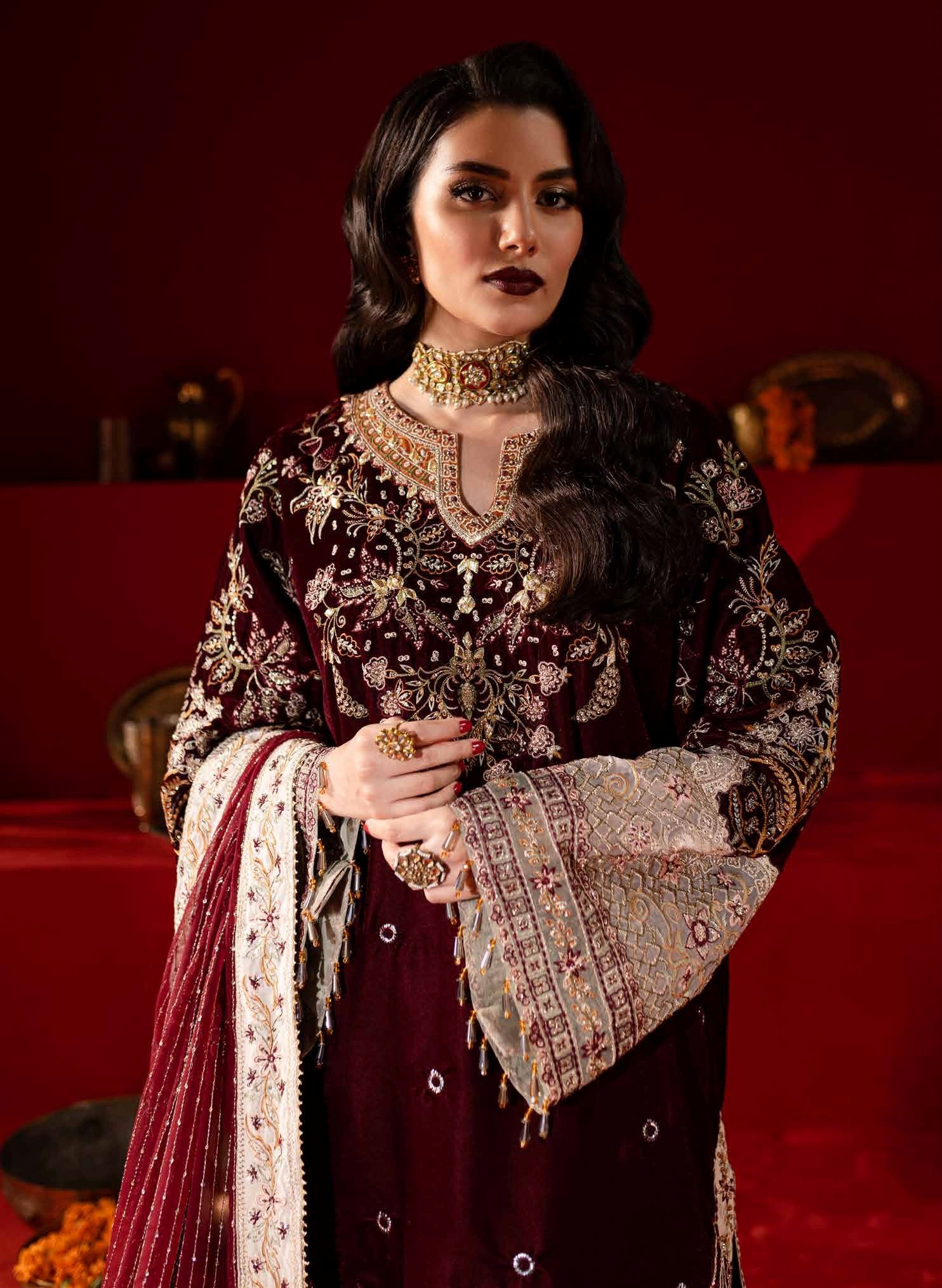 Embroidered And Hand Embellished Velvet Front