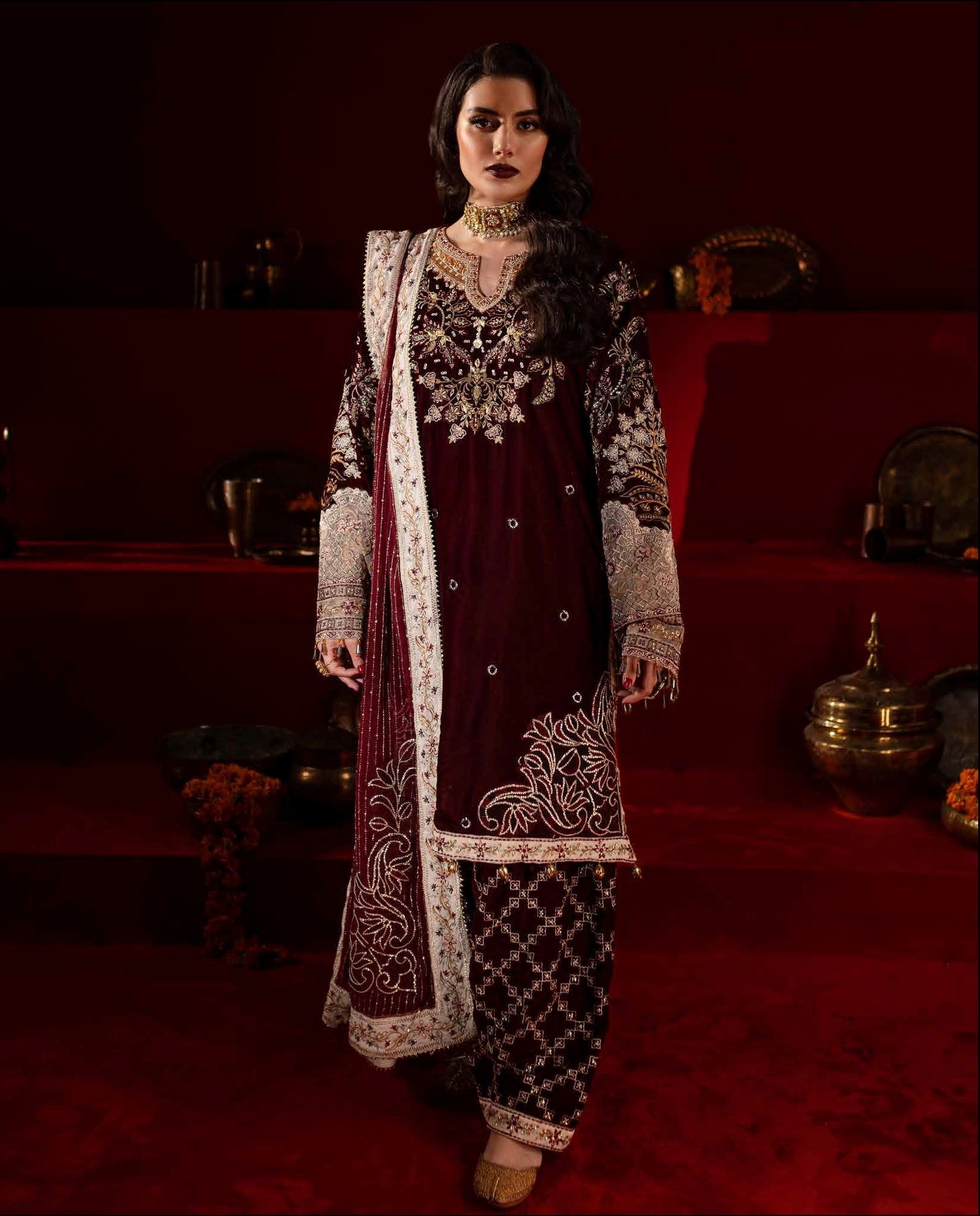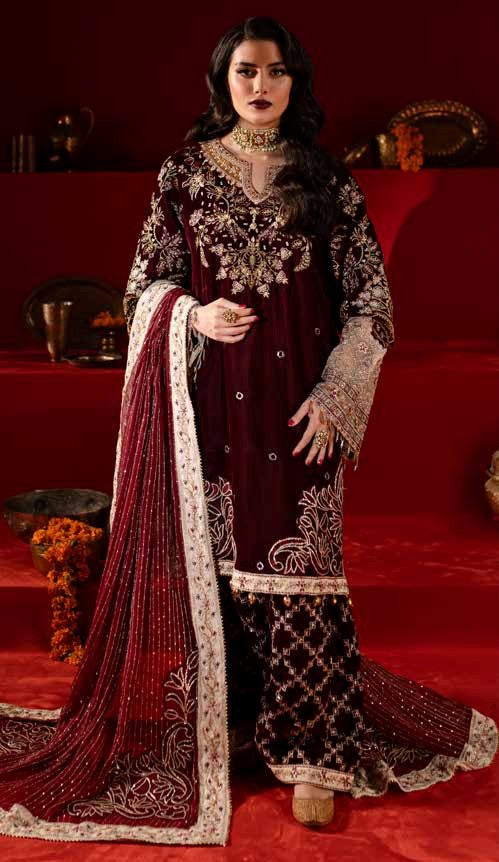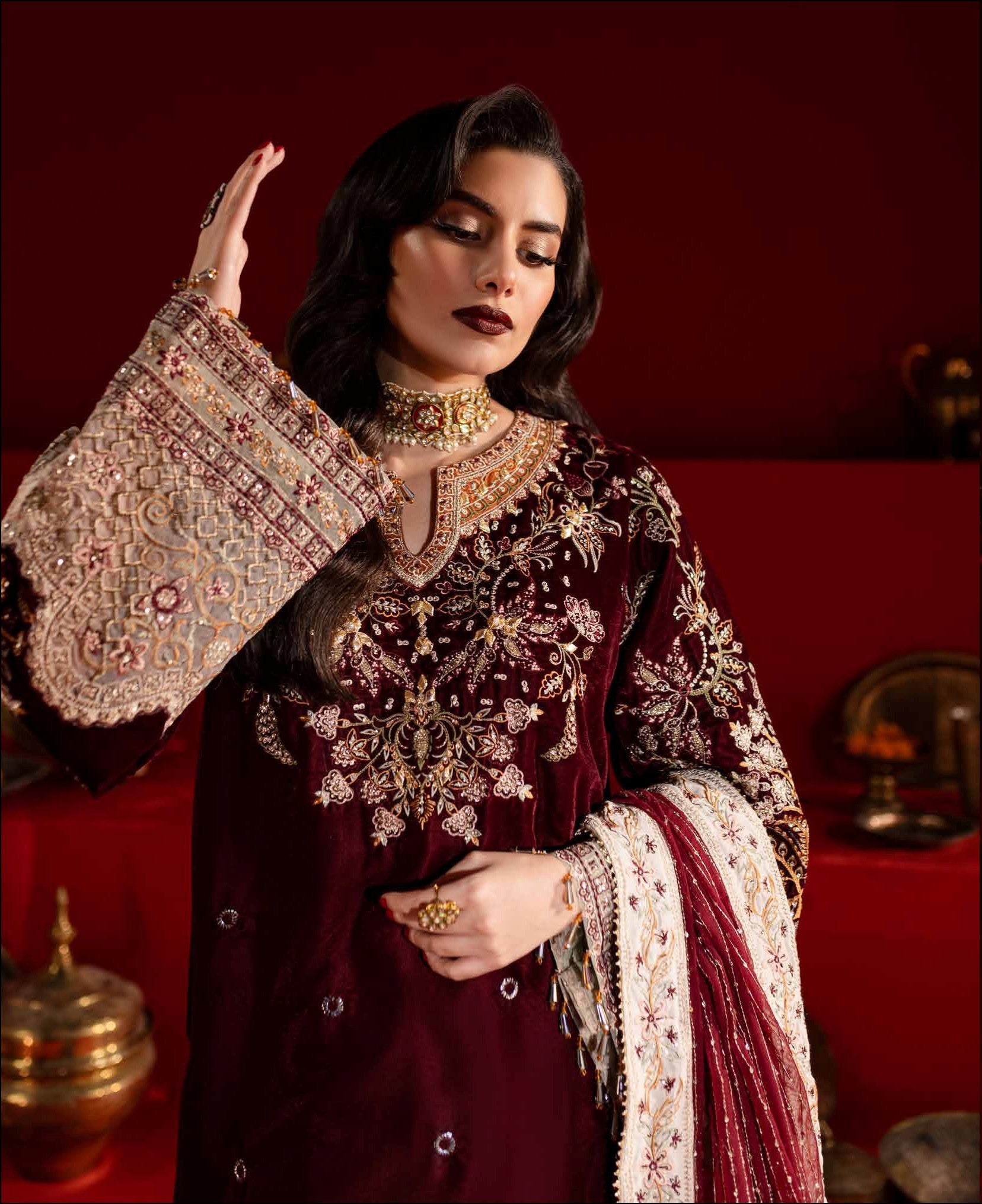 Embroidered And Hand Embellished Velvet Front